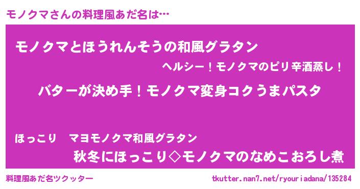| 女子向けラノベタイトル風あだ名 | 『モノクマ恋絵巻』『闇のモノクマ』 |
