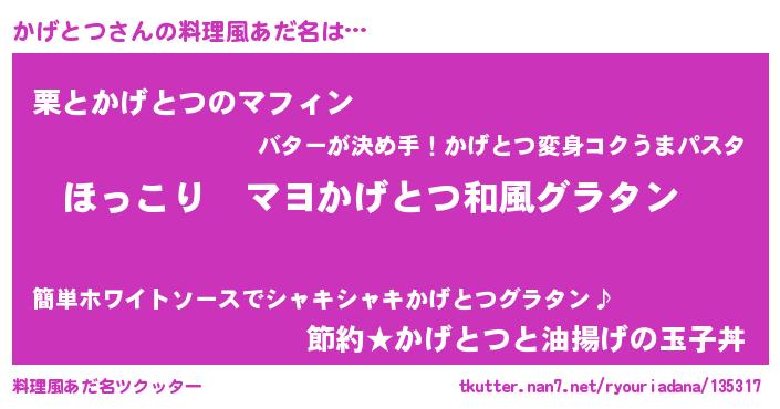 | 意味不明あだ名 | 『住所不定無職かげとつ(6歳)』 |