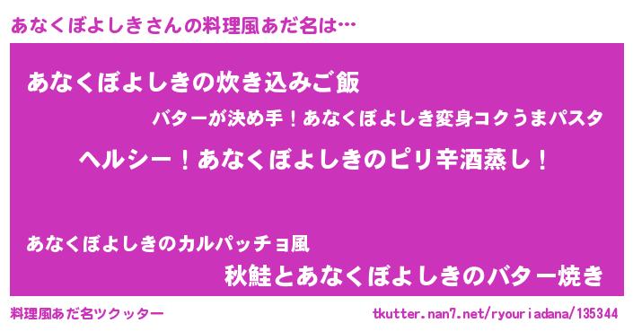 | 男性向けラノベタイトル風あだ名 | 『Re:あなくぼよしきから始める異世界生活』 |