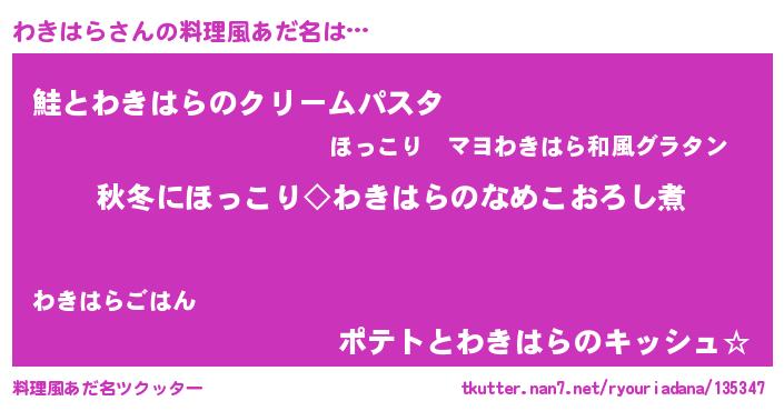 | ポケモン風あだ名 | 『ワキゴンZ』『ワックウザ』 |