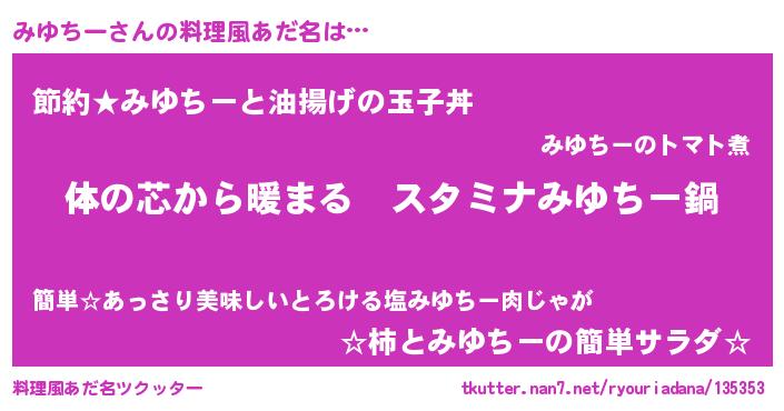 | ファンタジー風あだ名 | 『エターナルミユチーー』『ミユフェル』 |