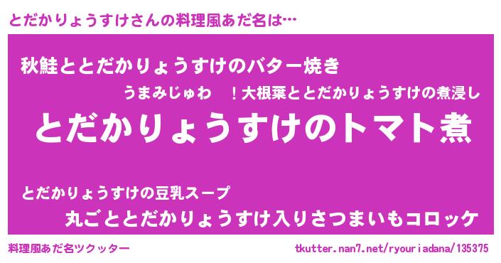 | 女子向けラノベタイトル風あだ名 | 『とだかりょうすけ夫妻のなれそめ』 |