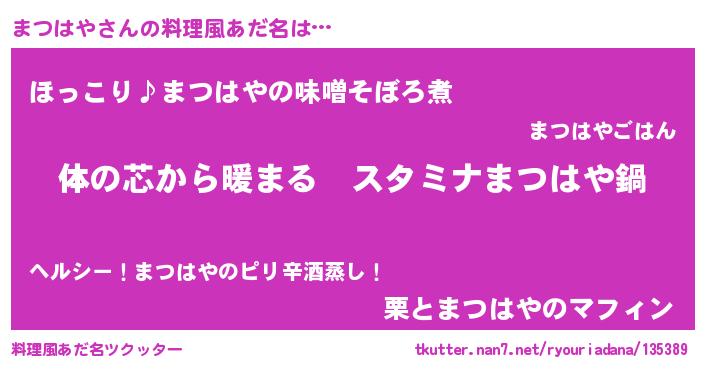 | 女子向けラノベタイトル風あだ名 | 『まつはやの雑貨屋さん』『闇のまつはや』 |