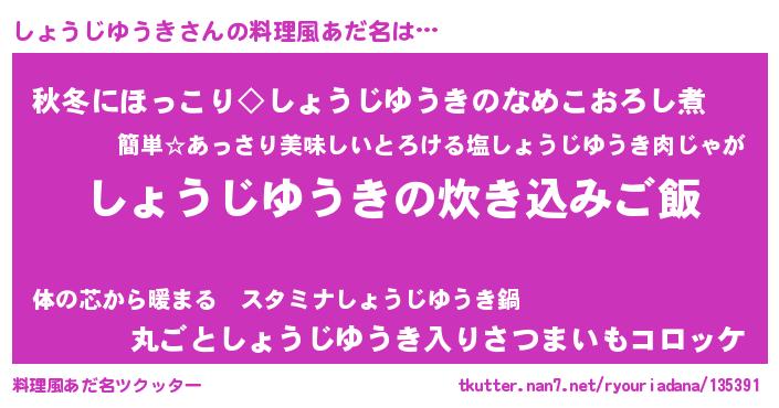 | 意味不明あだ名 | 『住所不定無職しょうじゆうき(77歳)』 |