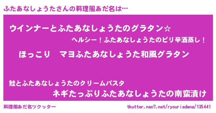 | 意味不明あだ名 | 『住所不定無職ふたあなしょうた(86歳)』 |
