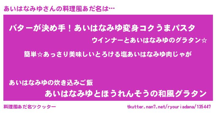 | ヘコむあだ名 | 『あいはなみゆ(笑)』『豆乳』 |