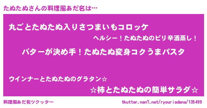 | 女子向けラノベタイトル風あだ名 | 『たぬたぬ恋絵巻』『たぬたぬ伯爵の花嫁』 |