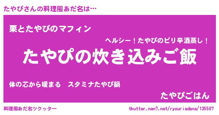 | 男性向けラノベタイトル風あだ名 | 『うちのたやぴが世界を掌握している!』 |