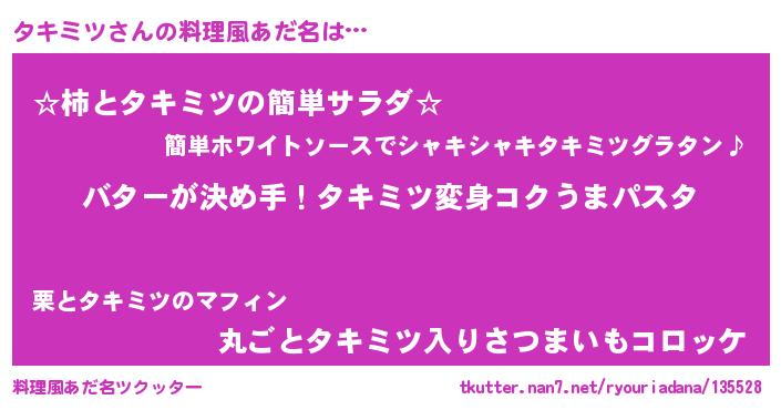 | 女子向けラノベタイトル風あだ名 | 『タキミツ恋絵巻』『タキミツ様がみてる』 |