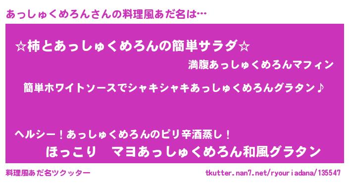 | 女子向けラノベタイトル風あだ名 | 『あっしゅくめろん様がみてる』 |
