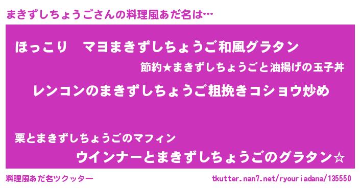 | 欧米人風あだ名 | 『ケンブリッジまきずしちょうご』 |