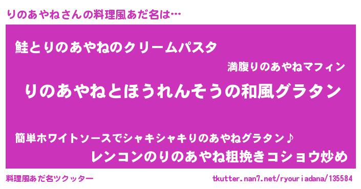 | 男性向けラノベタイトル風あだ名 | 『転生したらりのあやねだった件』 |