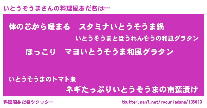 | 意味不明あだ名 | 『住所不定無職いとうそうま(91歳)』 |