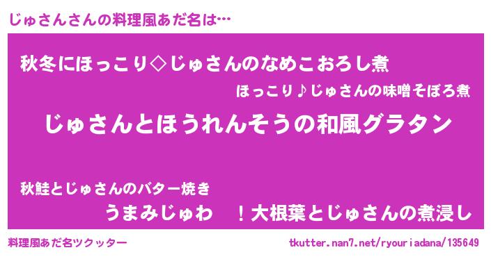 | 意味不明あだ名 | 『ニラ科じゅさん属』『ペロリンじゅさん』 |