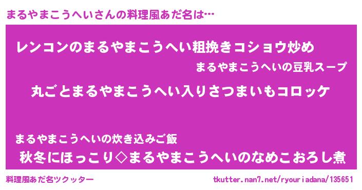 | 意味不明あだ名 | 『住所不定無職まるやまこうへい(65歳)』 |