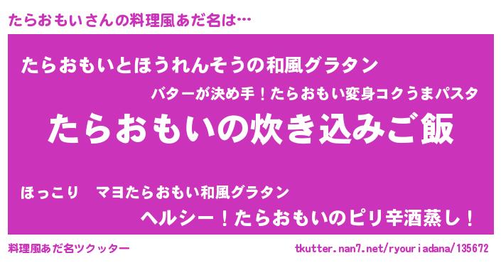 | 胡散臭い通販商品みたいなあだ名 | 『テレビで話題の高麗人参…その名も「たらおもい」』 |