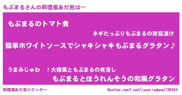 | 男性向けラノベタイトル風あだ名 | 『もぷまるの嫁は女の子じゃないと思った?』 |