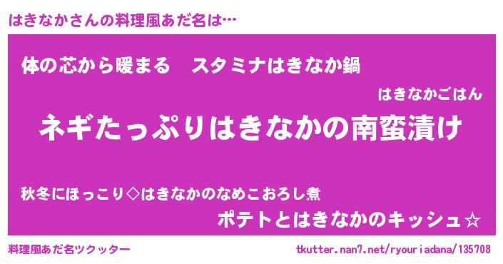 | 意味不明あだ名 | 『ペロリンはきなか』『自称はきなか』 |