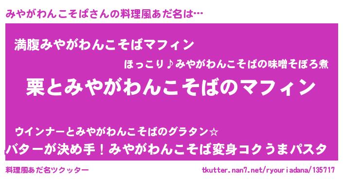 | 意味不明あだ名 | 『永久保存みやがわんこそば』 |