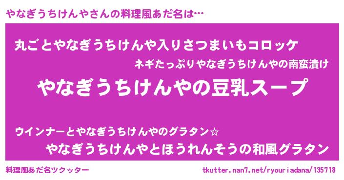 | 意味不明あだ名 | 『とにかく怪しいやなぎうちけんや』 |