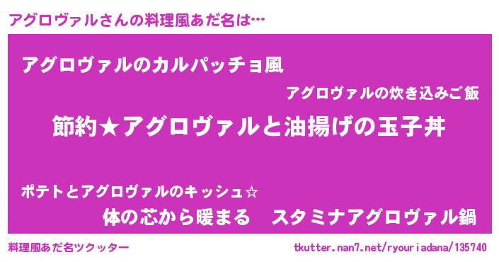 | ファンタジー風あだ名 | 『アグフェル』『ヴァルアグーナ』 |