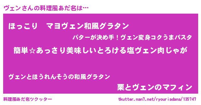 | ヘコむあだ名 | 『ヴェン(笑)』『ヴェっ子』『豆乳』 |