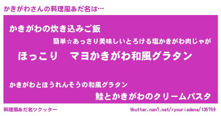 | 男性向けラノベタイトル風あだ名 | 『この素晴らしい世界にかきがわを!』 |