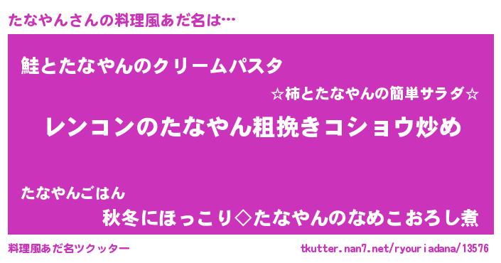 | 意味不明あだ名 | 『自称たなやん』『つくし科たなやん属』 |