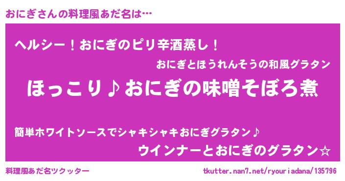 | 欧米人風あだ名 | 『マイケルおにぎ』『ケンブリッジおにぎ』 |