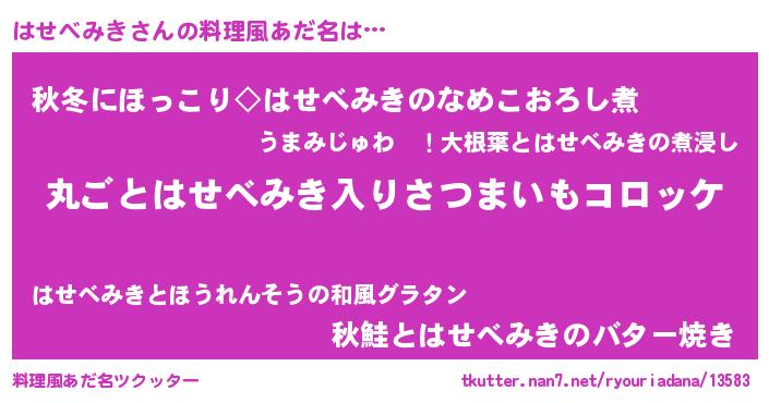 | 男性向けラノベタイトル風あだ名 | 『魔弾の王とはせべみき』 |