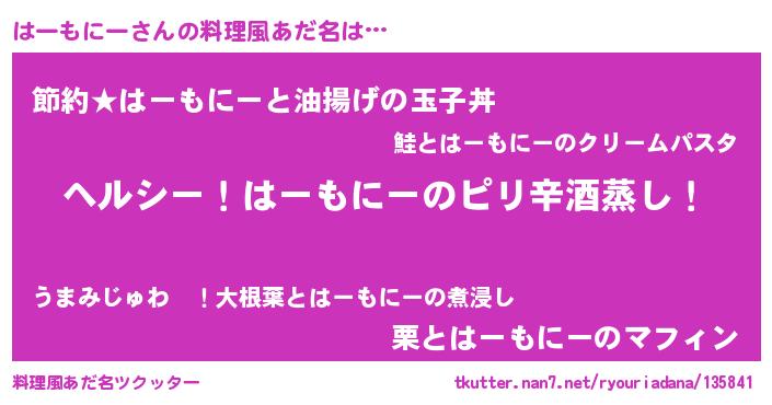 | 意味不明あだ名 | 『自称はーもにー』『ペロリンはーもにー』 |