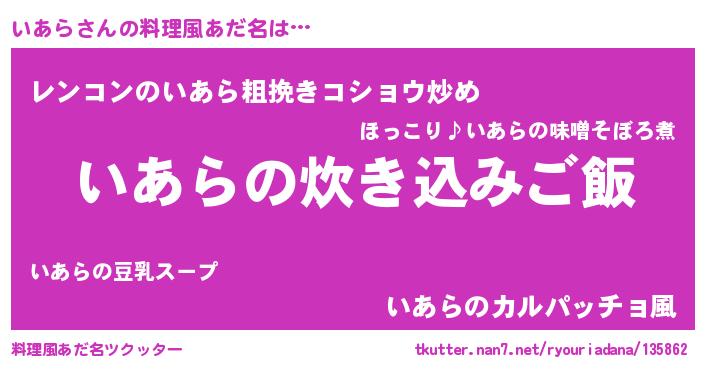 | 意味不明あだ名 | 『自称いあら』『住所不定無職いあら(84歳)』 |