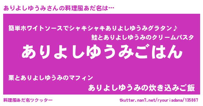 | ヘコむあだ名 | 『ありっちょ』『ありよしゆうみ(笑)』 |