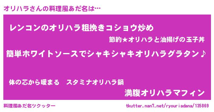 | ヘコむあだ名 | 『オリを』『オリハラ(笑)』『豆乳』 |