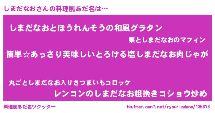 | ヘコむあだ名 | 『しまだなお(遠い目)』『しまふぇ~』 |