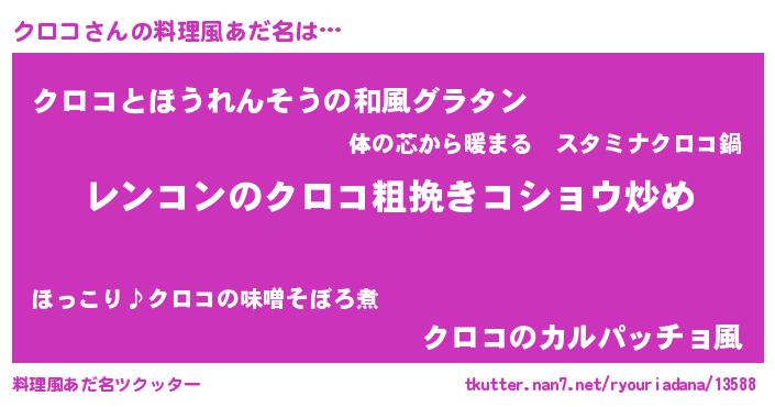 | 意味不明あだ名 | 『自称クロコ』『なめこ科クロコ属』 |
