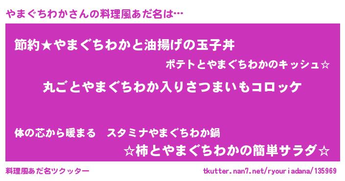 | 恥ずかしいあだ名 | 『プリティーやまぐちわか』『やまっちょ』 |