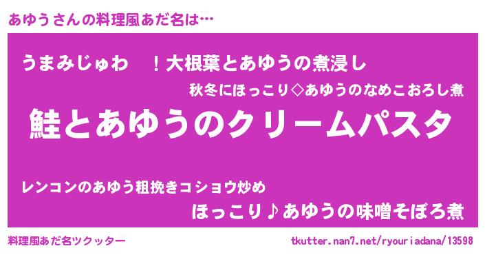 | 女子向けラノベタイトル風あだ名 | 『死神あゆうの再婚』『あゆうの婚約者』 |