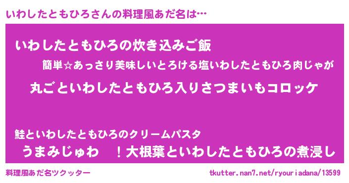 | 意味不明あだ名 | 『住所不定無職いわしたともひろ(40歳)』 |
