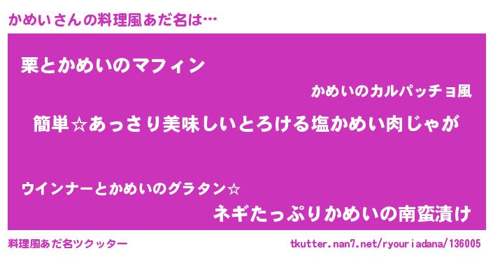 | 意味不明あだ名 | 『永久保存かめい』『ペロリンかめい』 |