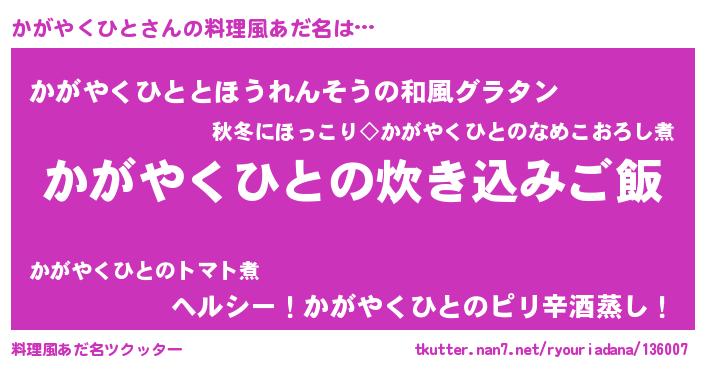| ヒーロー風カッコイイあだ名 | 『最強戦士カガヤクヒト』『幻影騎士カガ』 |