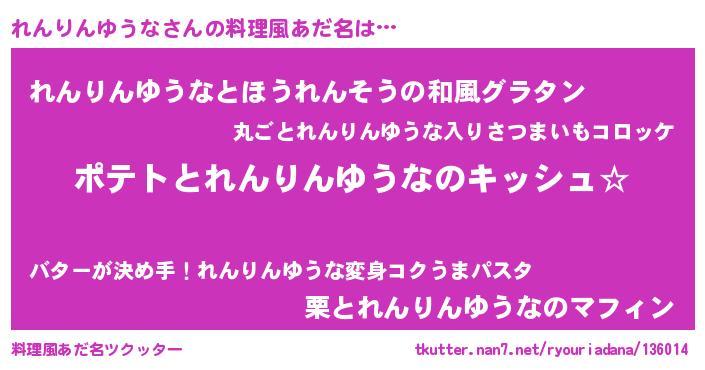 | 男性向けラノベタイトル風あだ名 | 『れんりんゆうなの嫁は女の子じゃないと思った?』 |