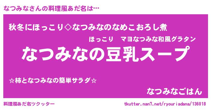 | ヘコむあだ名 | 『なつっぺ』『なつもー』『豆乳』 |