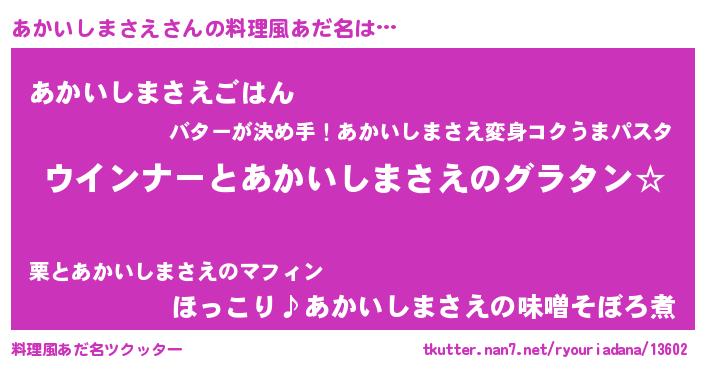 | 意味不明あだ名 | 『あかいしまさえフォーエバー』 |