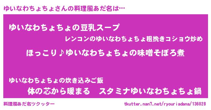 | 恥ずかしいあだ名 | 『プリティーゆいなわちょちょ』 |