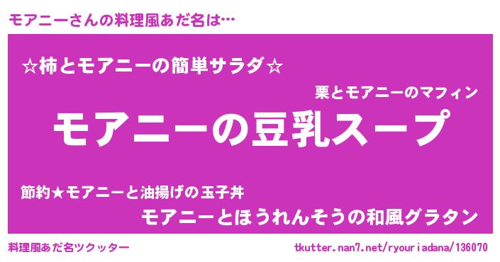 | 意味不明あだ名 | 『とにかく怪しいモアニー』 |