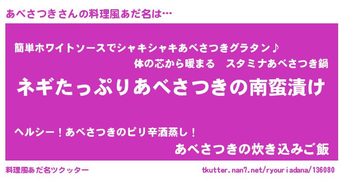 | 意味不明あだ名 | 『ペロリンあべさつき』『自称あべさつき』 |