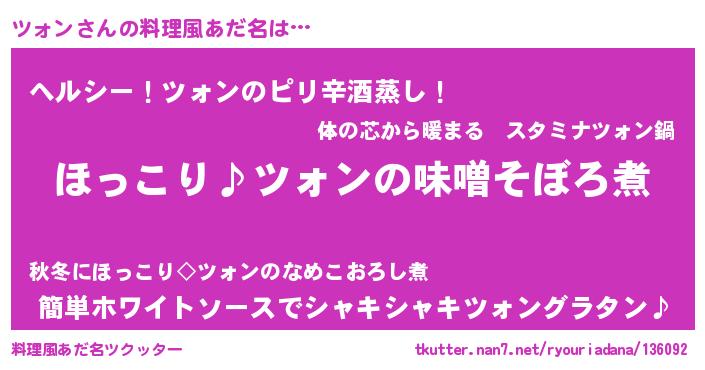 | ヒーロー風カッコイイあだ名 | 『スーパーツォン』『究極戦士ツォン』 |