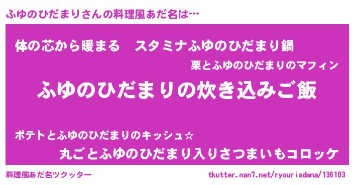 | ヘコむあだ名 | 『なまこ酢』『ふゆぷりん』 |