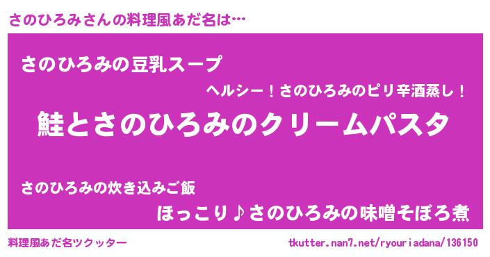 | 男性向けラノベタイトル風あだ名 | 『ノーゲーム・ノーサノヒロミ』 |